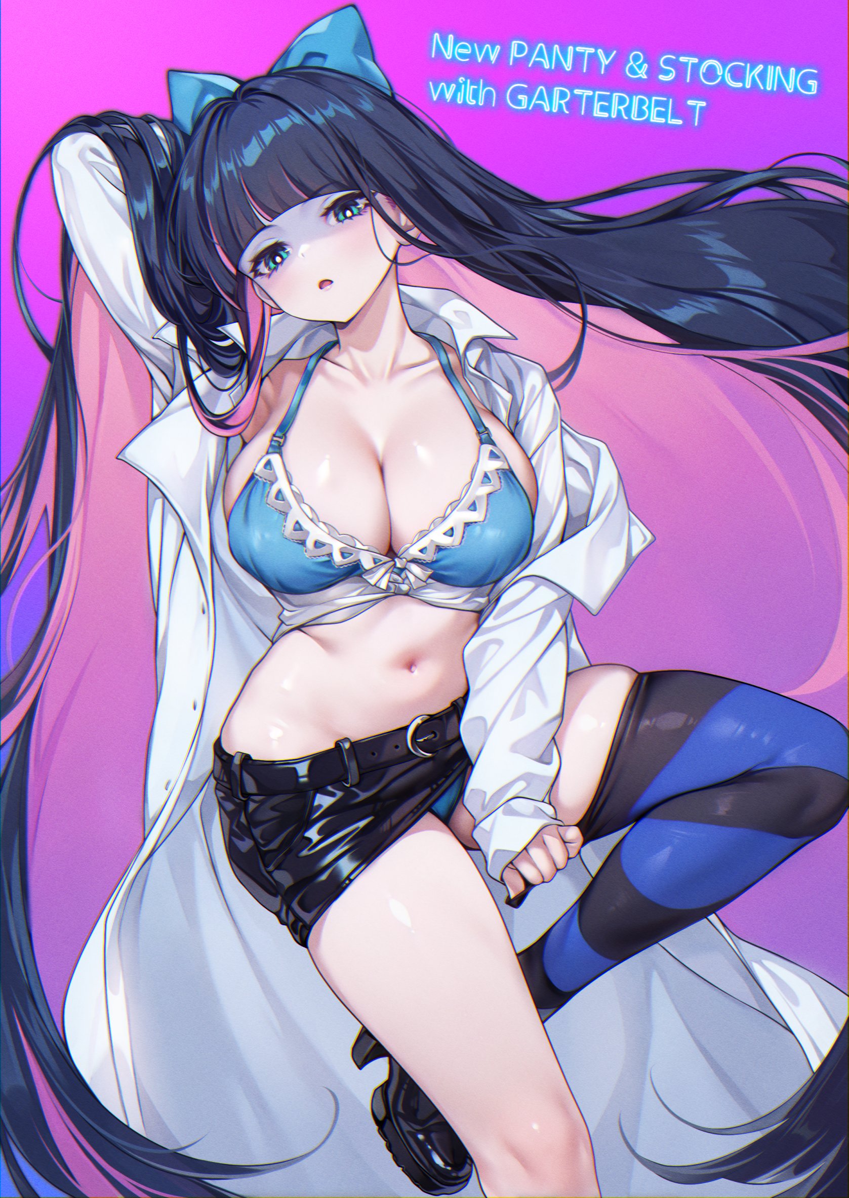 Tags: arm behind headblack hairblack shoesblack skirtblue bowblue brablue eyesblue pantiesblue thighhighsblunt bangsbowbrabreastsbright pupilscleavagecoatcollarbonecolored inner hairfemalefoot out of framehairbowhorizontal-striped thighhighslarge breastslong hairlong sleeveslooking at viewerminiskirtmulticolored hairnavelopen clothesopen coatpantiesparted lipspink backgroundpink hairshoessingle thighhighskirtsolothighhighsunderwearvery long hairwhite coatwhite pupils
