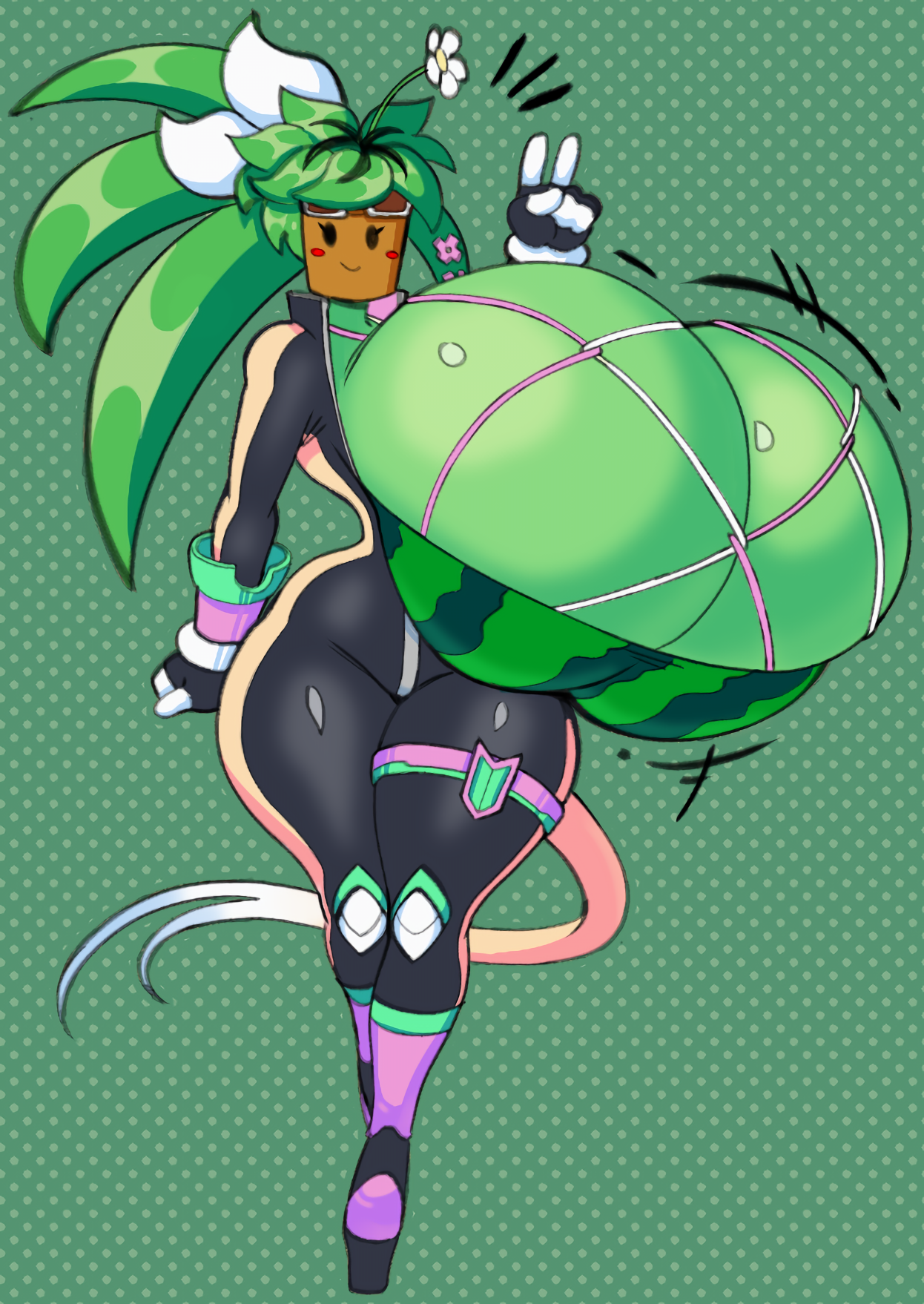 Tags: 1girlsbig assbig breastsbig buttbreastsfemalefemale focusfemale onlyfull bodyfully clothedgigantic breastsgooglesgravity defying breastsgreen bodygreen hairgreen skinhuge breastslarge asslarge breastslarge buttleafleaf on headmelonmonster girlno nipplesnon-humannon-mammal breastsobject headpeace signplantplant girlsmilesmilingtailwatermelonwatermelon brawatermelon girlwatermelon netswatermelon printwide hips