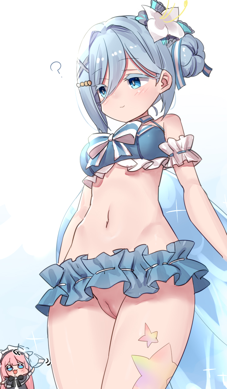Tags: 2girlsbikiniblue bikiniblue eyesblue hairbreastscleft of venusclosed mouthflowerfrilled bikinifrillshair bunhair flowerhair ornamentmedium breastsmultiple girlsnavelpussyRule34short hairswimsuitthick eyelasheswardrobe malfunctionx hair ornament