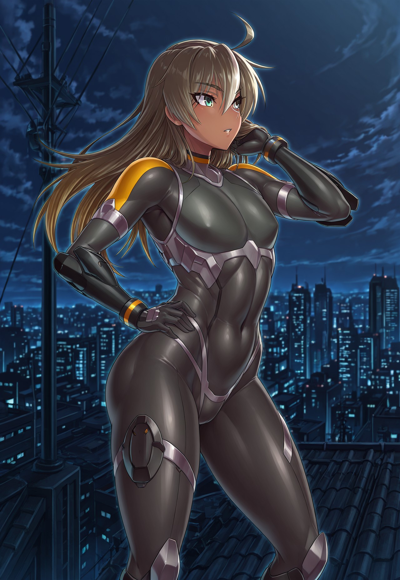 Tags: androgynousbodysuitcitycurvycurvy figuredark skinleotardlong hairmikoyan (ai style)nightnipplessexysexy poseshinyshiny clothesshiny skinthongtrapwide hips