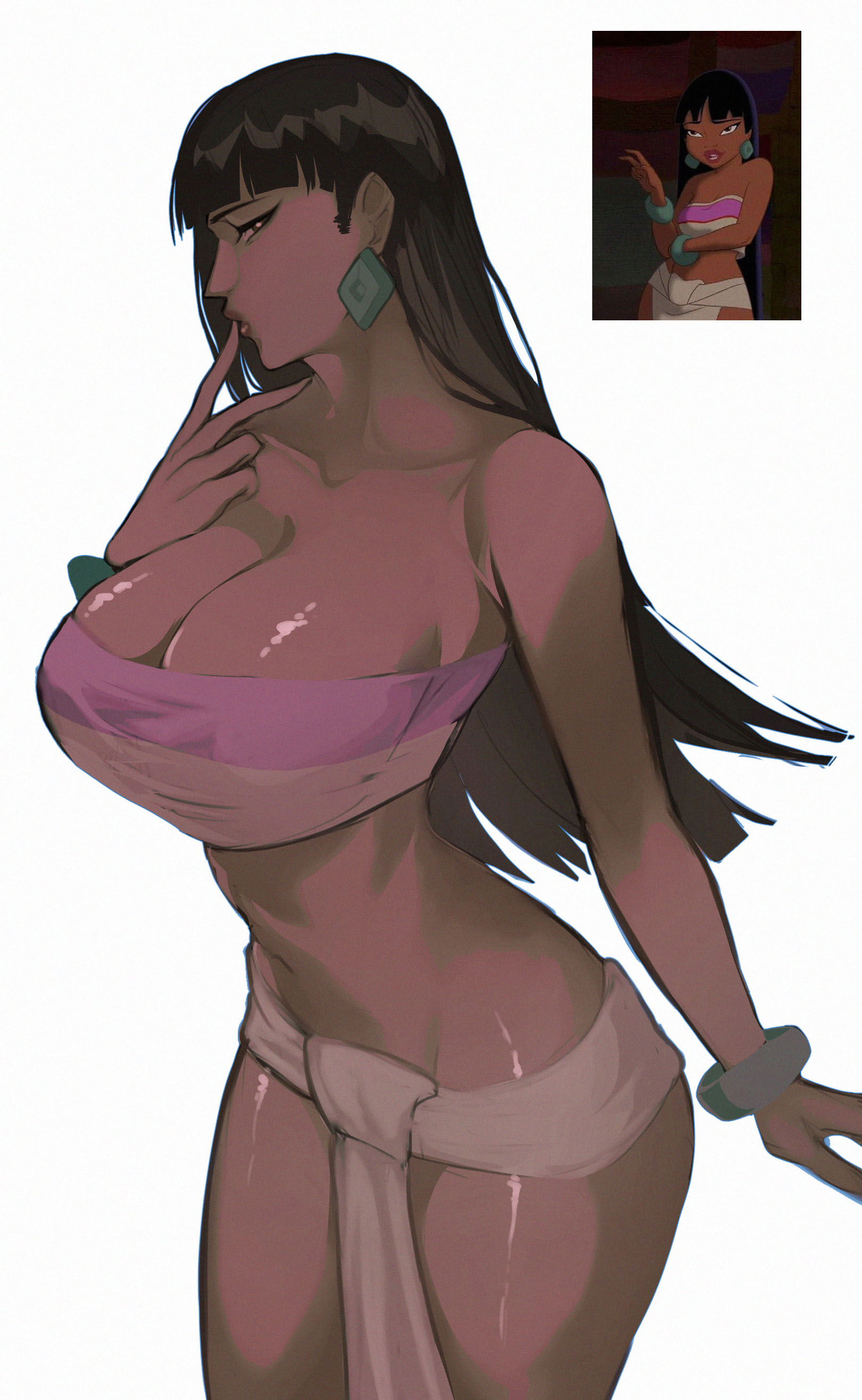 Tags: 1girl1girlsbig breastsblack hairbraceletbreastscleavageclothedcoveringdark skinearringsfemalefinger to mouthindigenousjewelrylarge breastslipslong hairnavelsolostraplessthick thighsthighhighsthighswide hips
