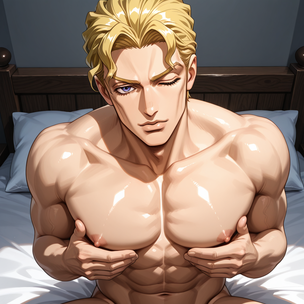 Tags: 1boyblonde hairinviting to suckmalemale nipplesmale onlymanboobsmasculine malemuscularmuscular malenudenude maleshort hairsolowinkwinkingwinking at viewer