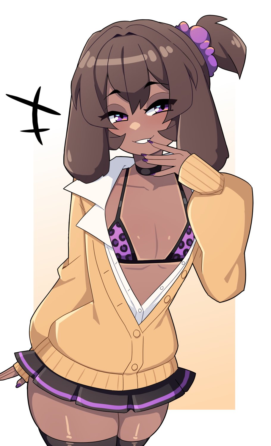 Tags: 1girlsbikini topbrown hairbunny earsbunny girlchokerdark skindark-skinned femalefemalefemale onlyflat chestfloppy earsgringrinning at viewergyaruleopard printleopard print bikinilooking at viewernarrowed eyesopen clothespurple eyessmilingsmiling at viewersolotanlinethick thighsthighhighsvoluptuous
