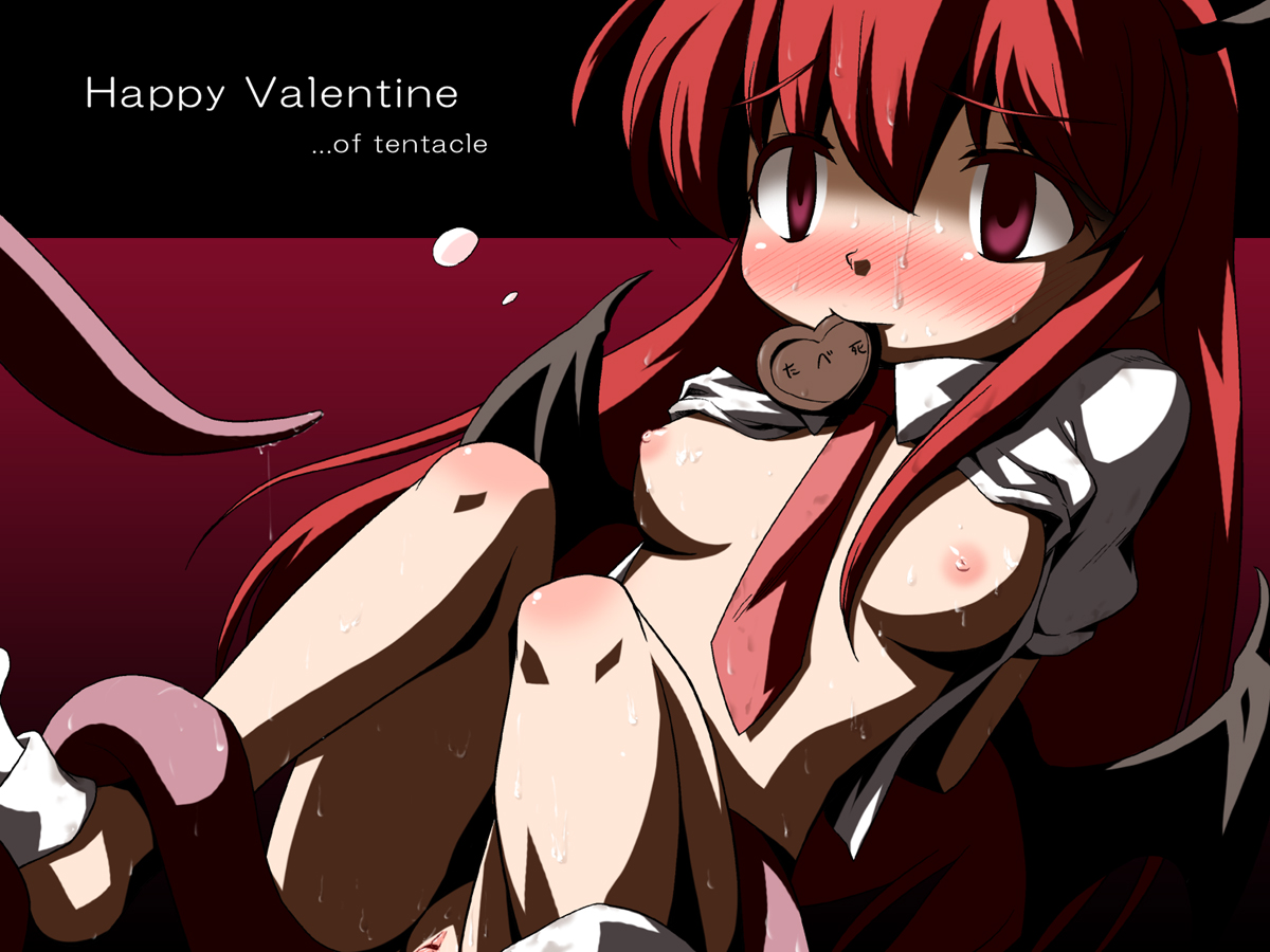 Tags: arms behind backbat wingsblushbreastschocolateclothesdemonfemalefemale onlyhead wingsheadwingslong hairmouth holdnecktienipplesnudeopen clothesred eyesred hairsolosuccubussweattentaclevalentinewings