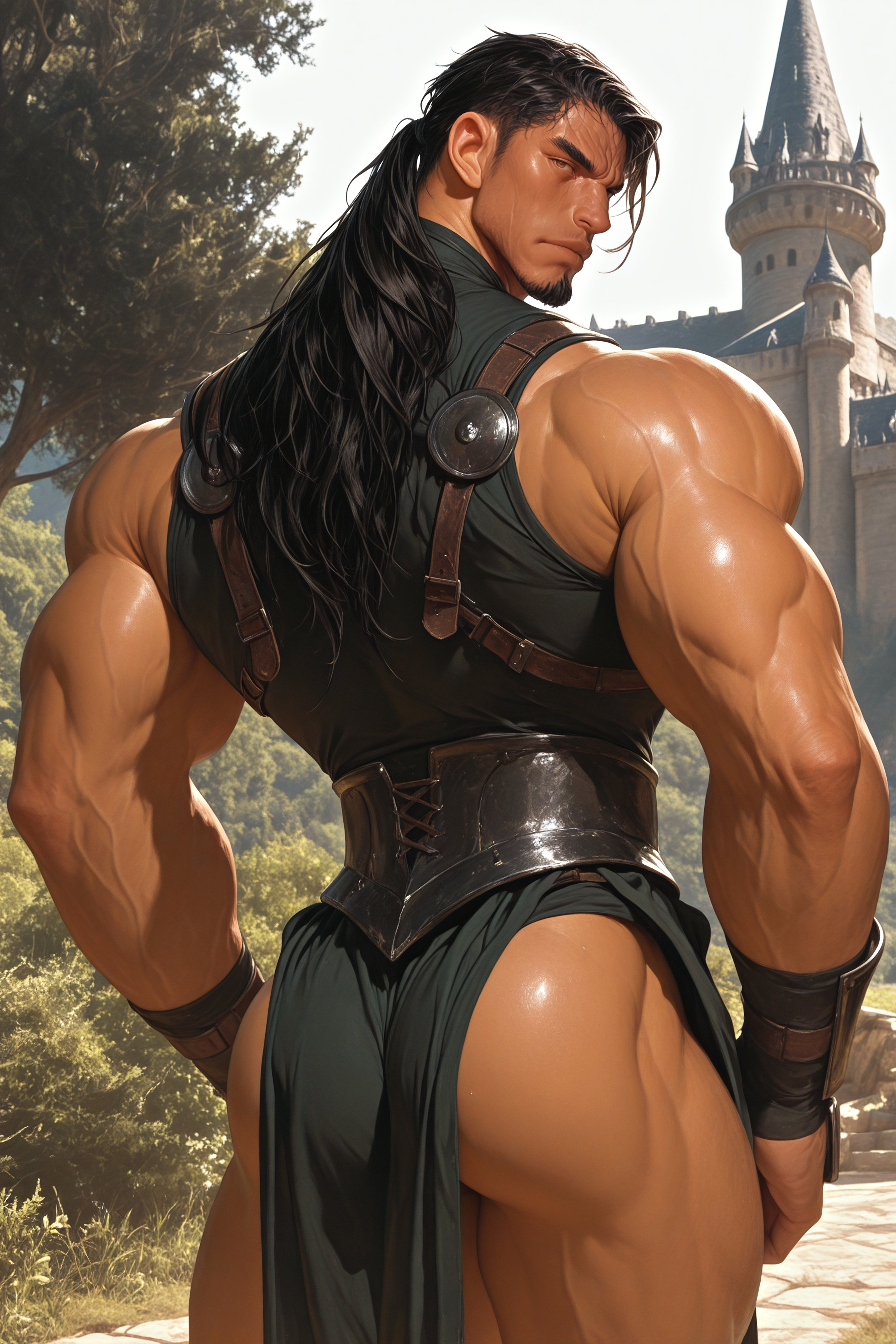 Tags: armorbarabarely coveredblack hairbottomlesschest armorgayhandsomehunkknightlong hairlooking at viewermalemale onlymasculine malemedieval armourmuscularmuscular armsmuscular assmuscular backmuscular legsmuscular malepartially nudepartially undressedprovocativeseductive bodyskimpyskimpy armorskimpy clotheswarrior