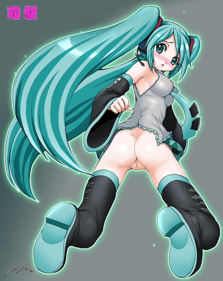 Tags: aqua eyesaqua hairassblushbottomlessfemalefrom behindgreen eyesgreen hairlong hairlooking backno pantiespussysolotied hairtwintails