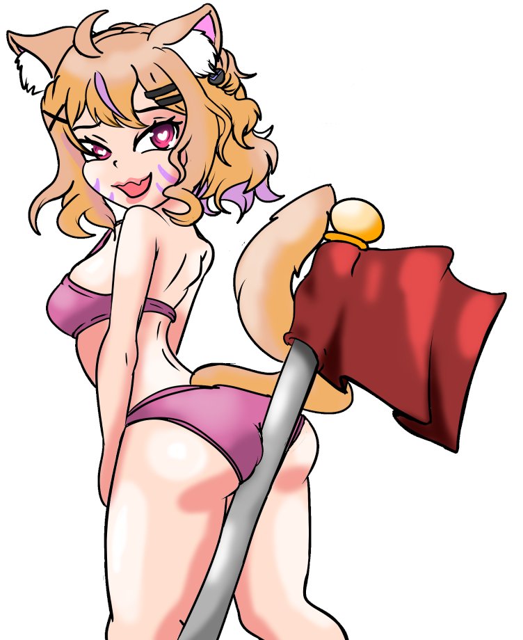 Tags: :3ahogeanimal earsassbrabreastscat earsfemalehair ornamenthaircliplooking at viewerlooking backpantiespink brashort hairsolotailtonguetongue outunderwearwhite background