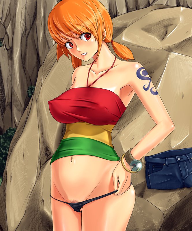 Tags: arm tattooblue tattoobottomlessbreastsclothingdenimdenim shortserect nipplesfemalefemale onlyhalter tophalterneckjewelrylarge breastslog poselow twintailsmound of venusnavelnipplesno pantsorange hairorange-haired femalepantiespubic hairred eyesshort twintailsshortssmilestraight hairtattootattoo on armtattooed armtaut shirtthongtied hairtwintailsunderwear