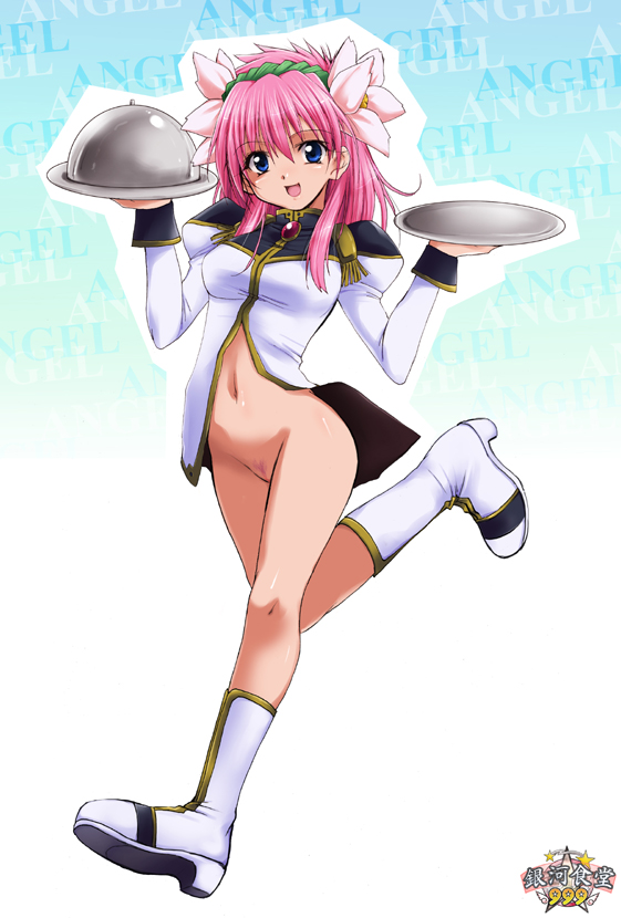 Tags: aqua backgroundblue eyesbootsbottomlessfemaleflowergradienthair flowerhair ornamenthairbandlong hairnavelno pantiespink hairpubic hairrunningsmiletrayw armswhite background