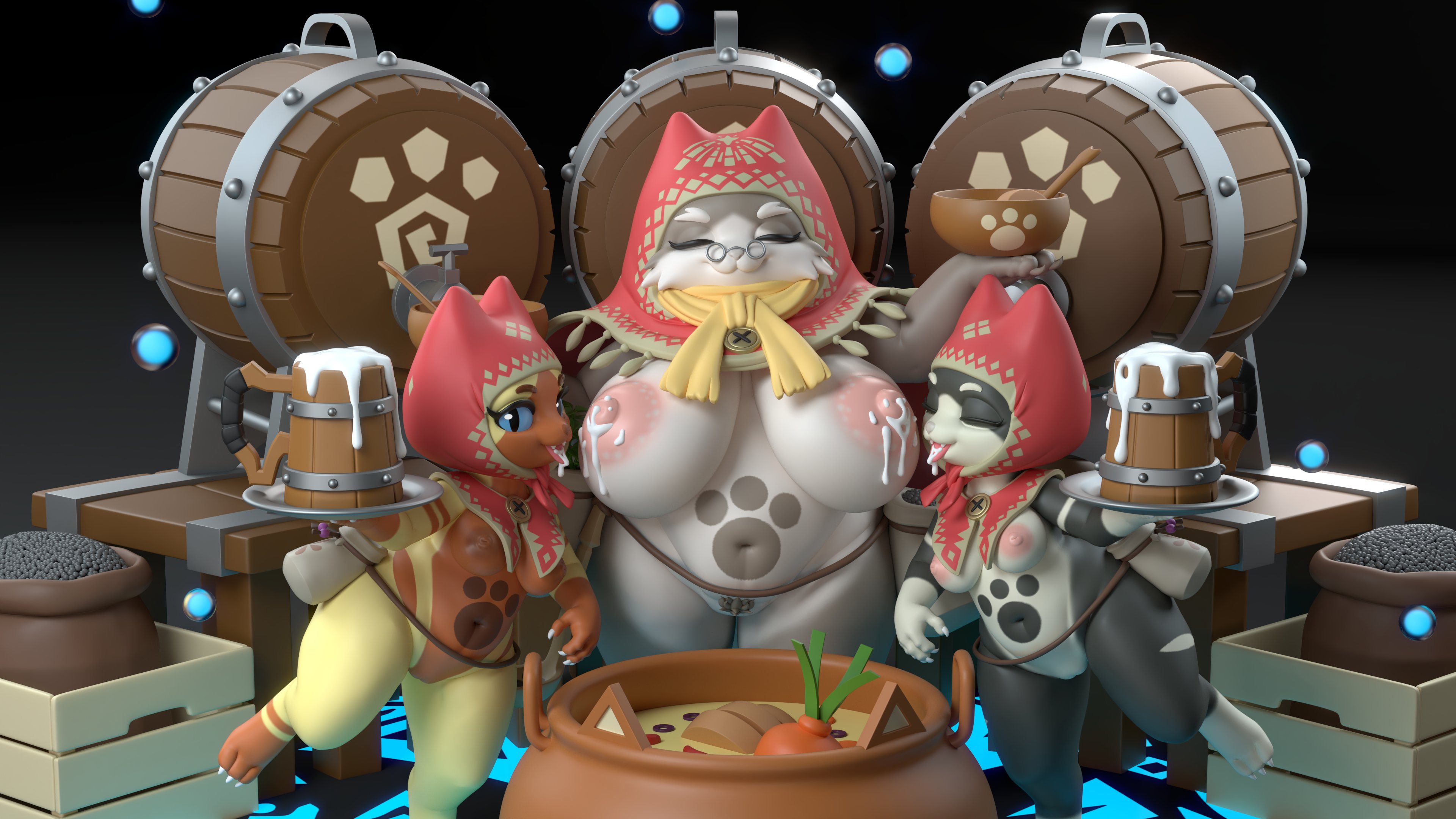Tags: anthroareolabellybelly markingsbeveragebig breastsblack backgroundblack eyesblue sclerabodily fluidsbreastsbrown areolabrown bodybrown furbrown nipplesclawsclosed eyesclothingcooking poteyelasheseyewearfangsfeetfelidfemalefront viewfurgenitalsglassesgloves (marking)grey backgroundgrey bodygrey furgrey pubesgroupheadgearheadgear onlyheadwearheadwear onlyholding beverageholding objecthuge breastslactatingleg markingslooking at viewermammalmarkingsmature femalemilkmilk on tonguemostly nudenavelnipplesnudepubesred clothingred headwearround glassesscarfshort stacksmall breastssmall glassessocks (marking)teeththick thighstonguetongue outtriovulvawhite bodywhite clawswhite furwide hipsyellow bodyyellow furyellow scarf