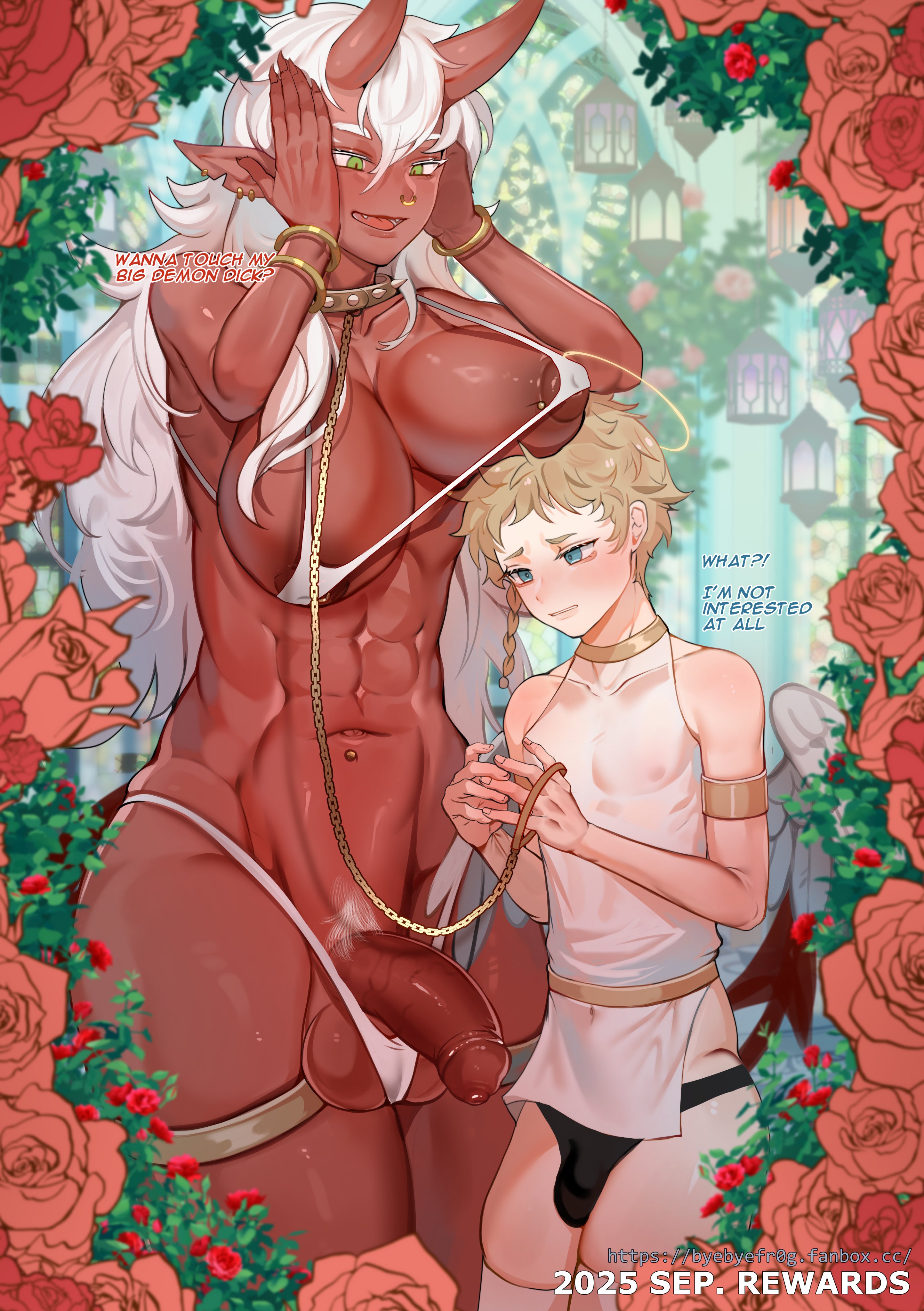 Tags: absangel boyangel wingsbikinichainsdemondemon girlfutanarihornsleash and collarmalemuscularnipple piercingpiercingsred skinsize difference