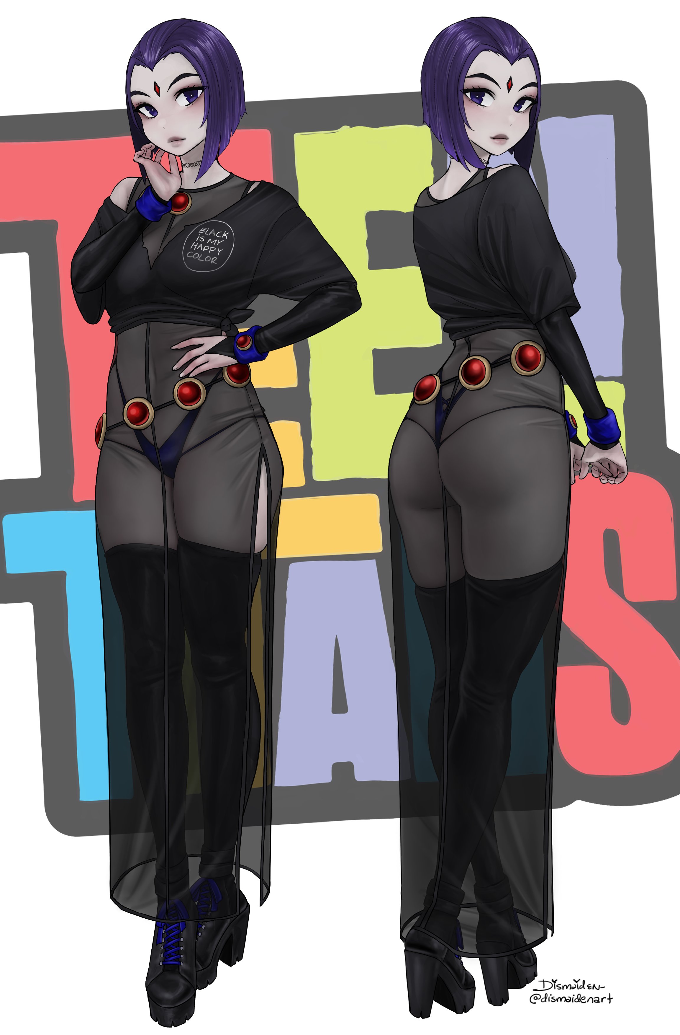 Tags: alternate costumeassblack shirtblack thighhighschokercolored skincropped shirtdressfemalefemale onlyforehead jewelfull bodygothgoth girlgrey skinhand uphigh heelsmultiple viewsnavelpurple eyespurple hairpurple lipssee-through clothessee-through dressshirtstandingthighhighsthong
