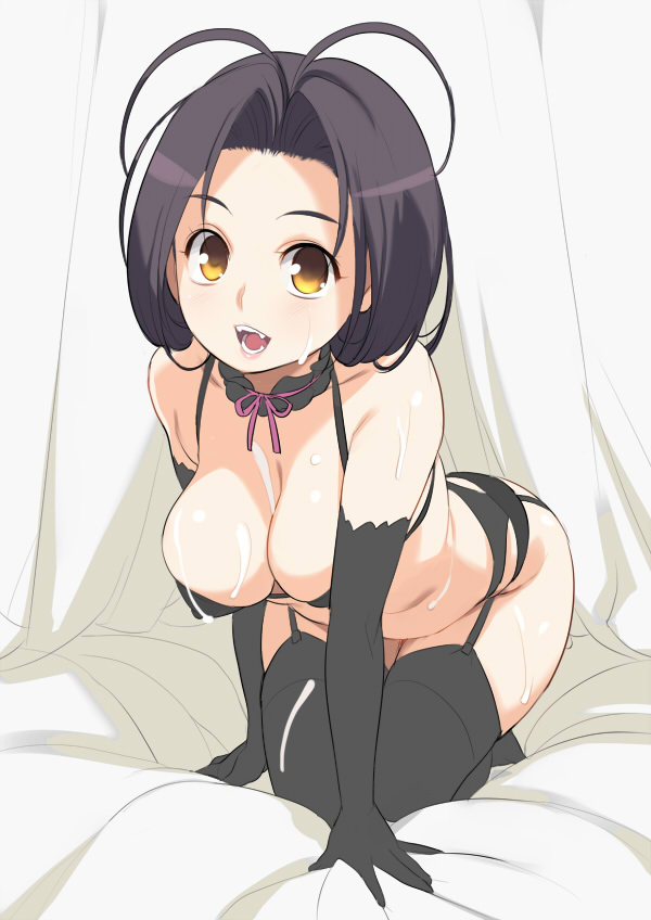 Tags: 1girlsantenna hairbent overblack hairbreastsbrown eyescleavagecumcurvyelbow glovesfangsfemalegarter beltgloveslarge breastslingerieopen mouthsolosweatthighhighsunderwearyellow eyes