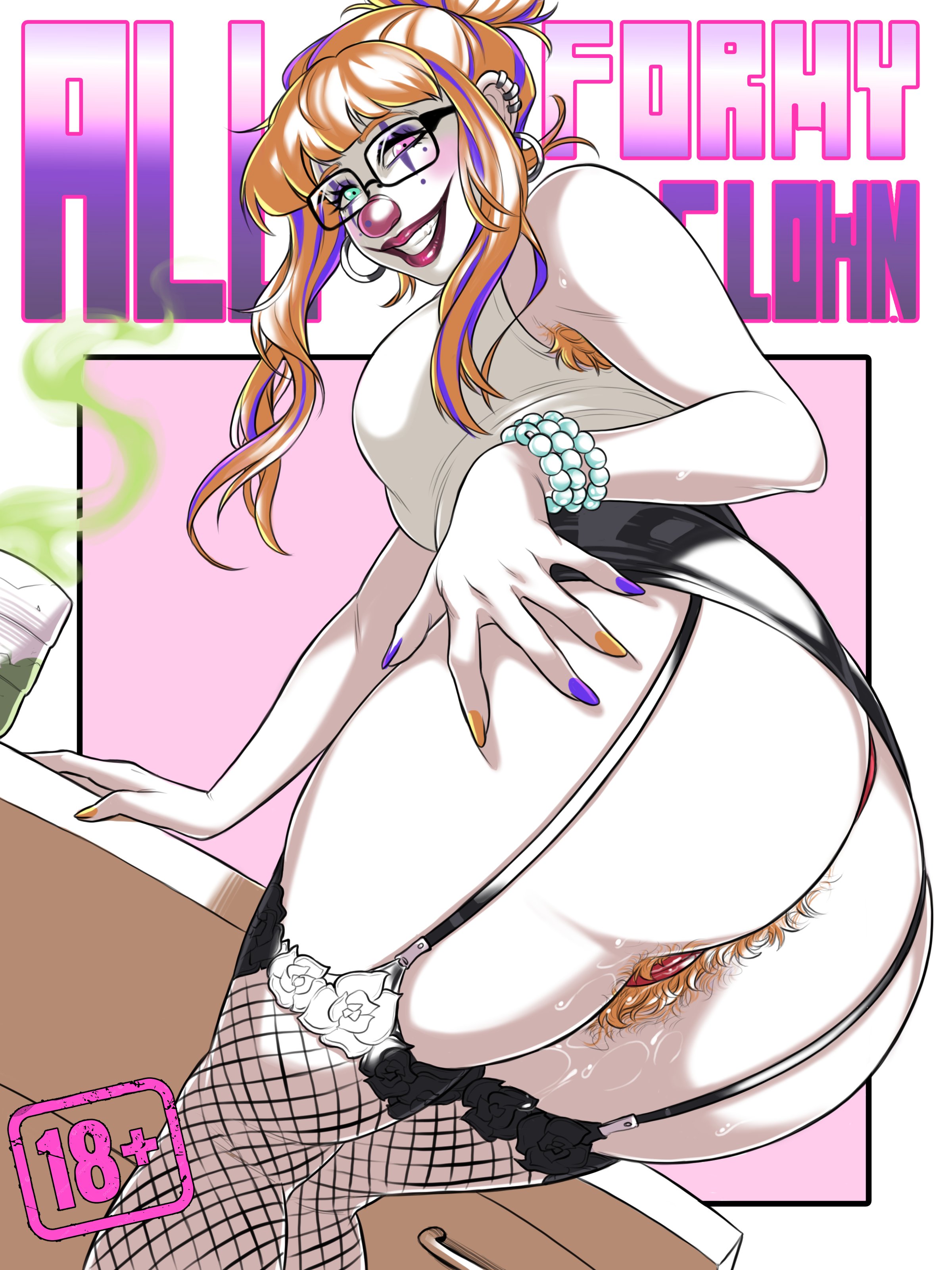 Tags: 1girlsaqua eyesarmpit hairassclownclown girlclown makeupclown nosefemalefemale onlyfishnet stockingsgarter strapsglassesgringrinning at viewerhairy anushairy pussyheterochromialooking at viewerlooking backlooking back at viewermulticolored nailsoffice ladyorange hairorange nail polishorange pubic hairpantiespearl braceletpink eyespubic hairpurple hairpurple nail polishrear viewred lipsticksmilingsmiling at viewersolostockingsthick assthick thighstied hairtwo tone hair