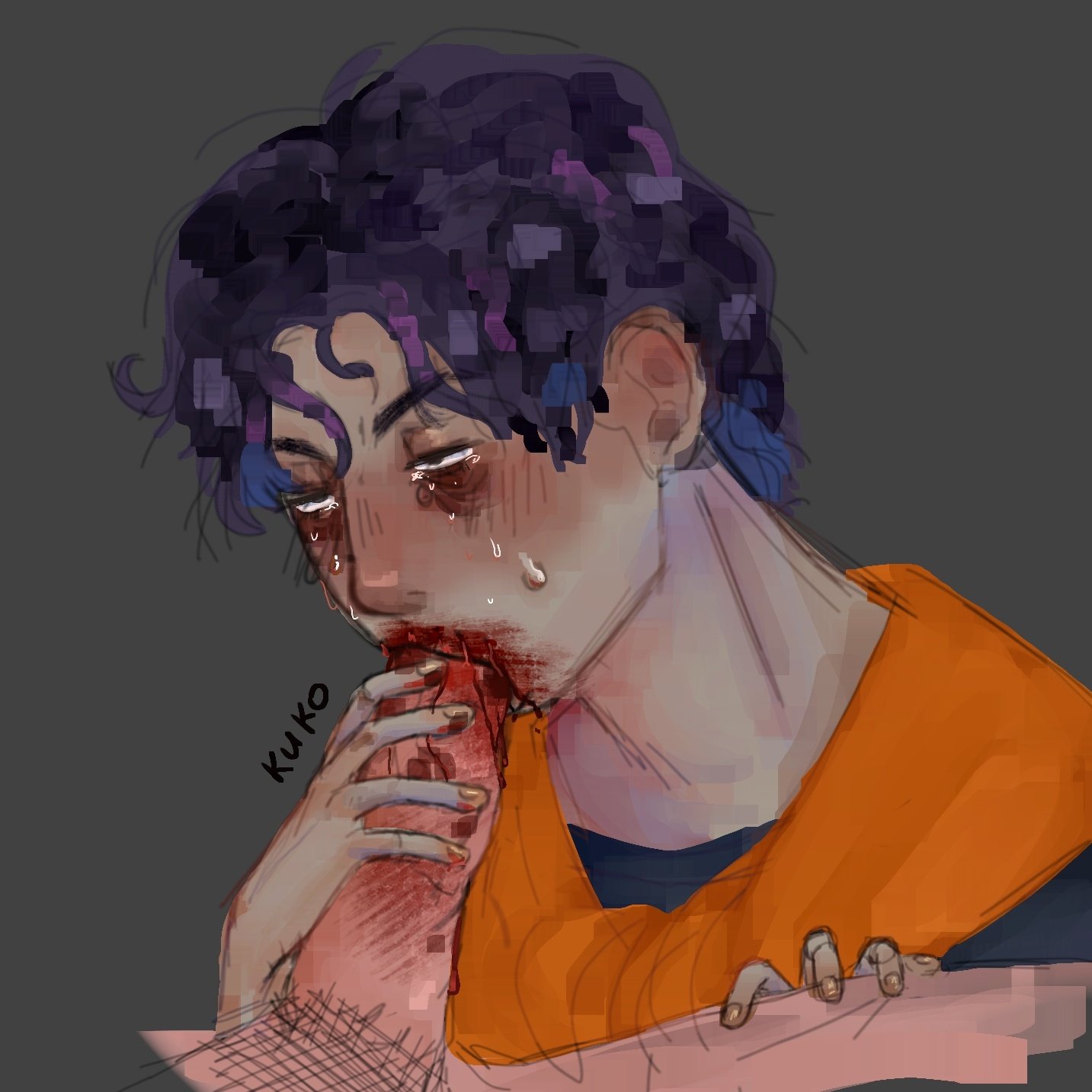 Tags: 2boysbags under eyesblood on faceblood stainblowjobblushcryingcrying with eyes opencucoggerectionfellatiohalf-closed eyesmalemale onlyoralpenispurple hairquestionable consentsolo focusstitched mouthtears