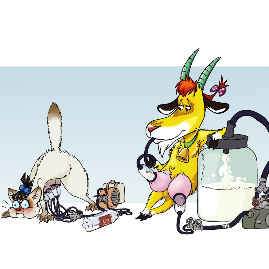 Tags: 2girlsblack hairblue scleracaprineclawscloven hoovescowbelldrinking milkdrinking own milkeyelashesfelinefemalefemale onlygoathooveshornslactatinglactationmilkmilkingmilking machineorange hairpawstailteatsudderswhite bodywhite furyellow bodyyellow fur