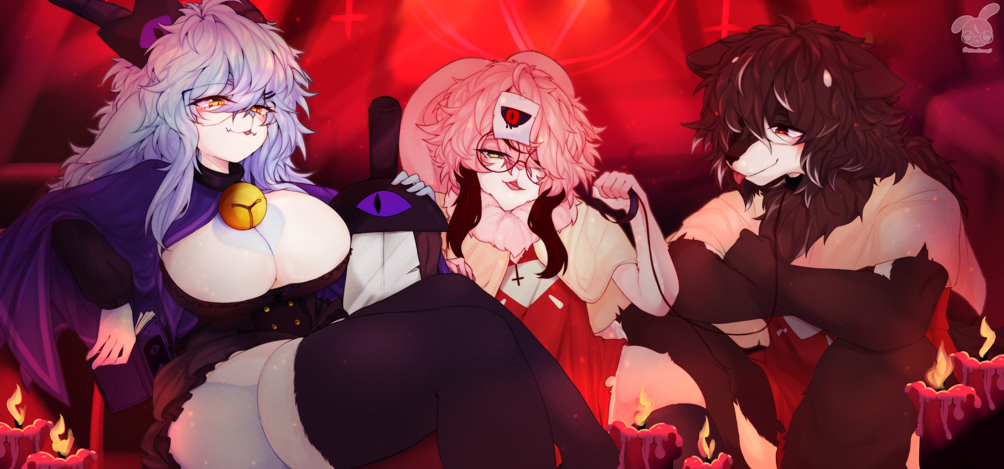 Tags: 1girls2boysanthrobig breastsbovidbovinebreastscanidcaninecaprineclothedclothingeyewearfemalefemboyfloppy earsfurgirlyglassesgoatgrouphairhornlagomorphleporidlop earsmalemammalpink bodypink furpink hairrabbitsmiletrio