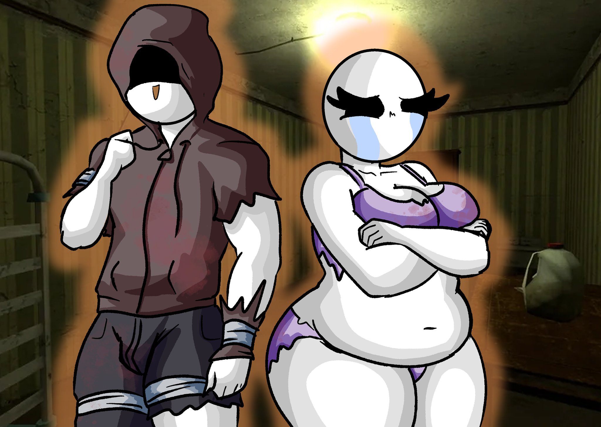 Tags: 1boy1girlarms crossedarms crossed under breastsbald femalebellybelly buttonblack eyesbreastsbrown hoodiechubbychubby femaledirty clothingeggfemalefrownfrowninghappyhappy malehoodiemalepantspurple brapurple pantiesshaded eyesshaded facesmilesmilingtearstorn clothestorn clothingunderwearunhappyunhappy femalewhite body