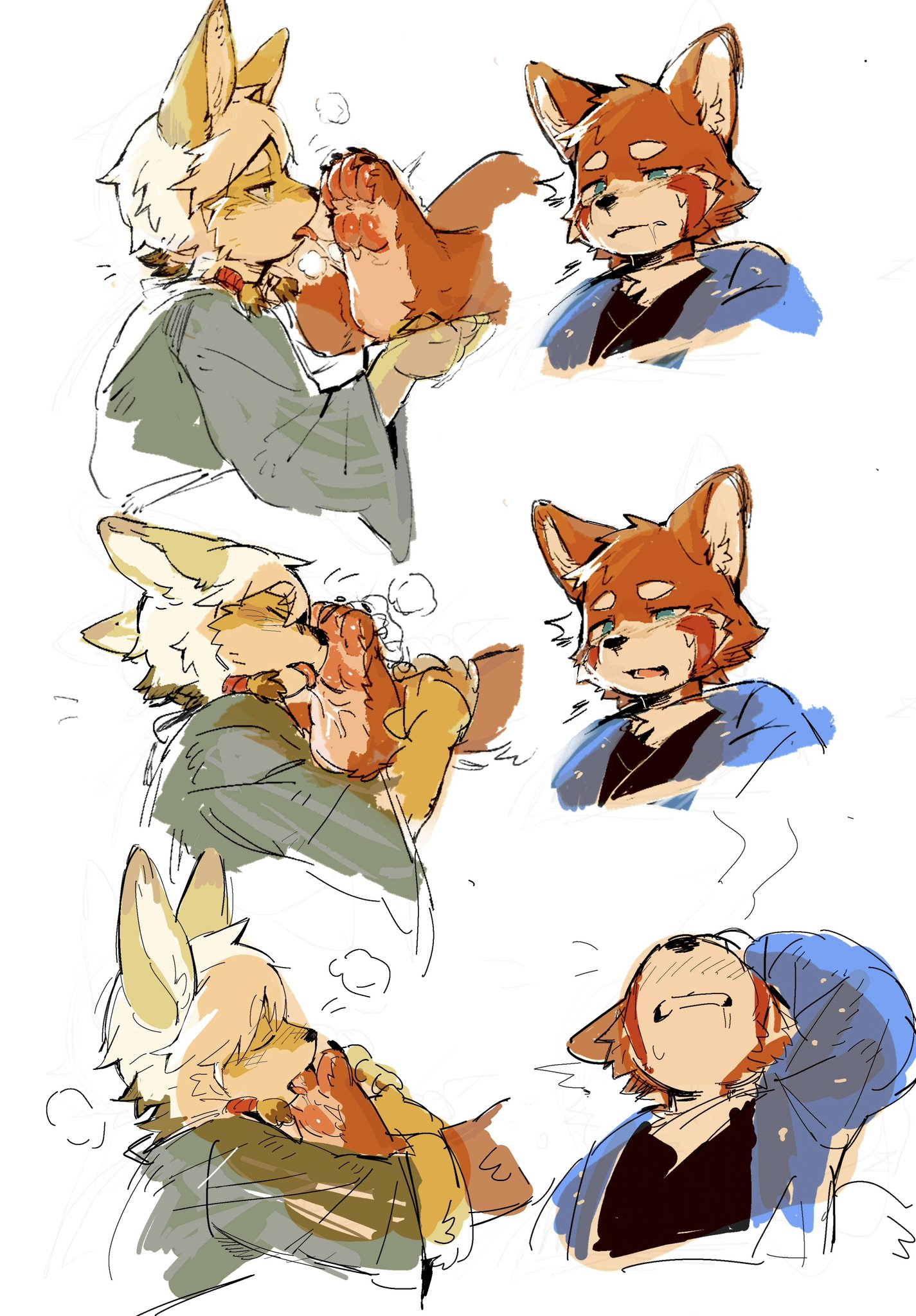 Tags: 4 toesailuridanthroblack noseblushclawsclosed eyesclothedclothingduoembarrassedfacial markingsfeetfoot fetishfoot lickfoot playfurhairhead markingslickingmalemale/malemammalmarkingsorange bodyorange furpawpadspawsred bodyred furred pandatoe clawstoestonguewhite backgroundwhite hair