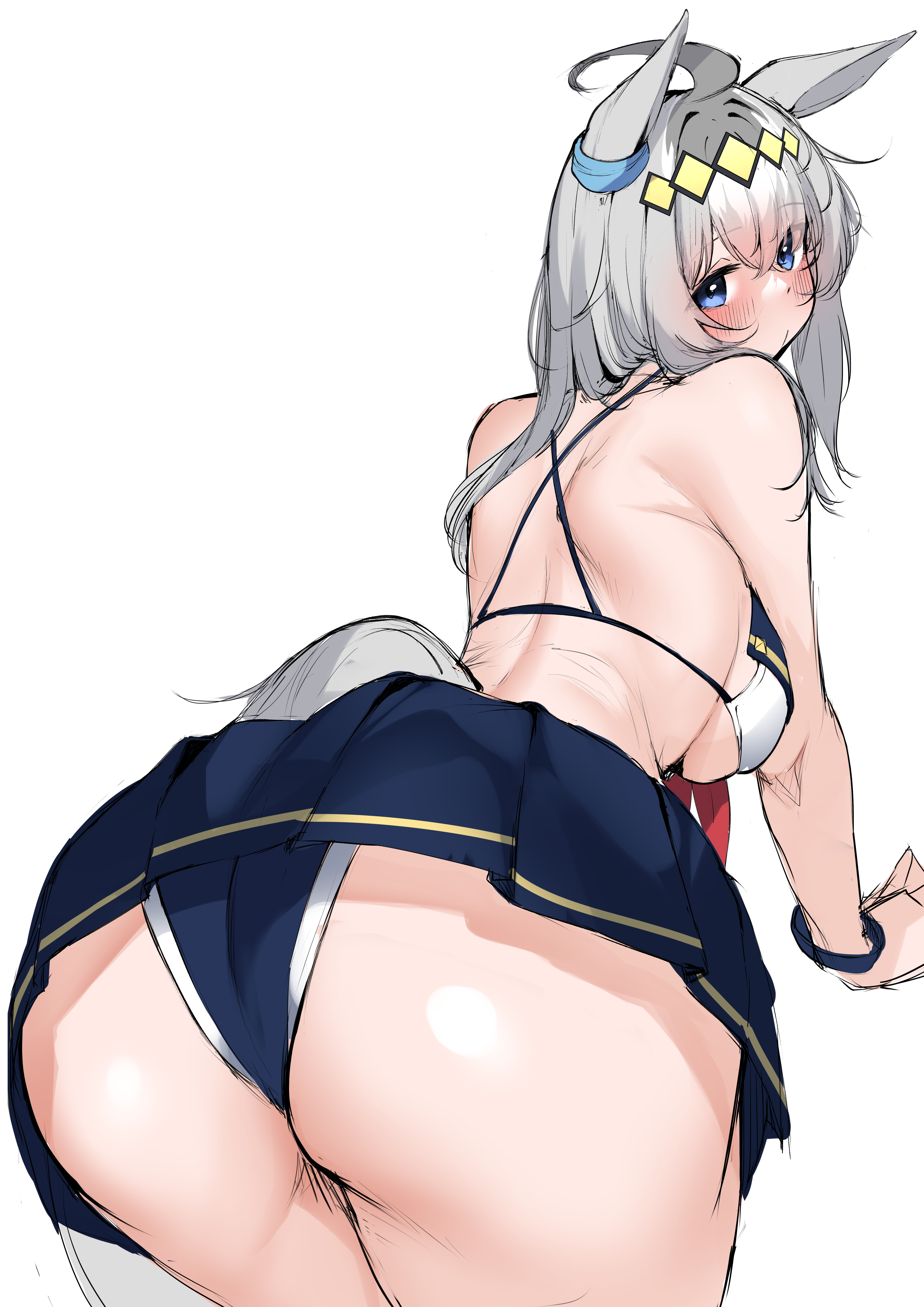 Tags: animal earsbikiniblue hairblue skirtbreastsfemalefrom behindgrey hairhorse earshorse girlhorse taillarge breastslong hairlooking at viewerlooking backoguri cap (starlight beat) (umamusume)skirtsoloswimsuittailwhite background