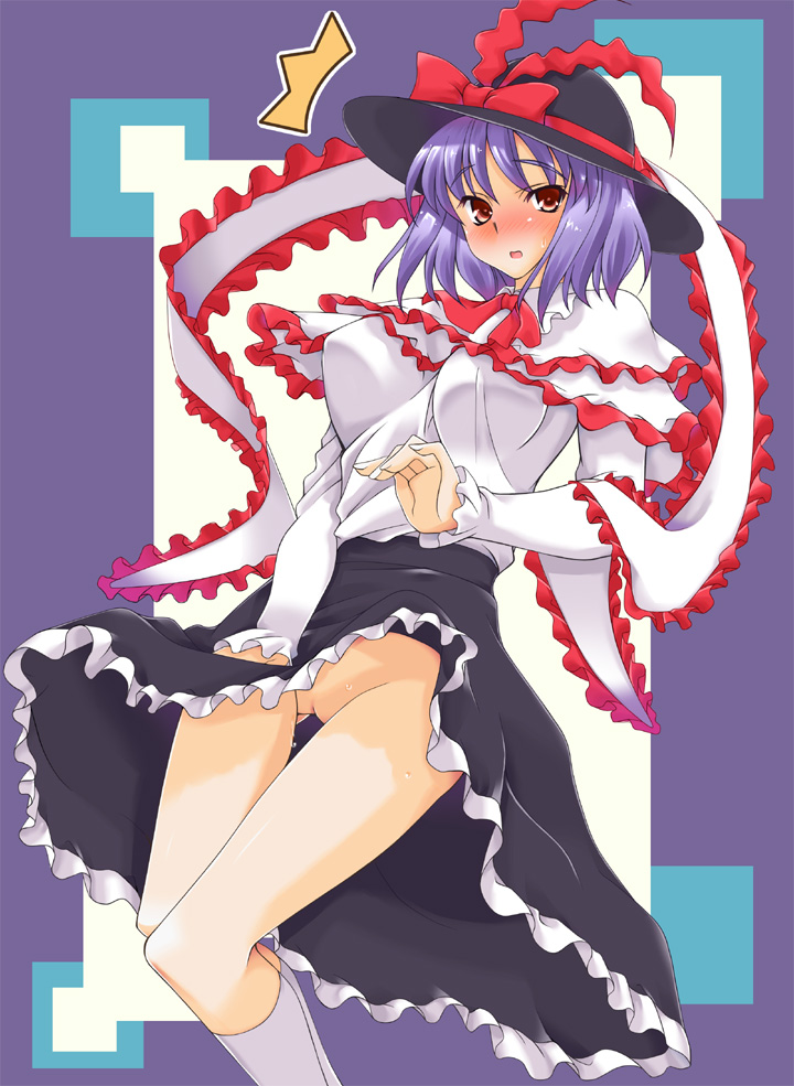 Tags: breastsdressfemalefootwearhatkneehighslarge breastsno pantiespurple hairpussyred eyesshawlshort hairsockssurprised