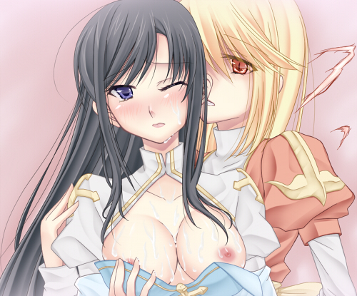Tags: 2girlsbio labblack hairblonde hairblue dressblushbreastscleavagecleavage cutoutclothing cutoutcrosscumcum on bodycum on breastsdate morinodressjuliet sleeveslong hairlong sleevesmargaretha sorinmedium breastsmultiple girlsnipplesone eye closedopen mouthpink backgroundpuffy sleevespurple eyesred dressred eyestwo-tone dressupper bodywhite dressyuri