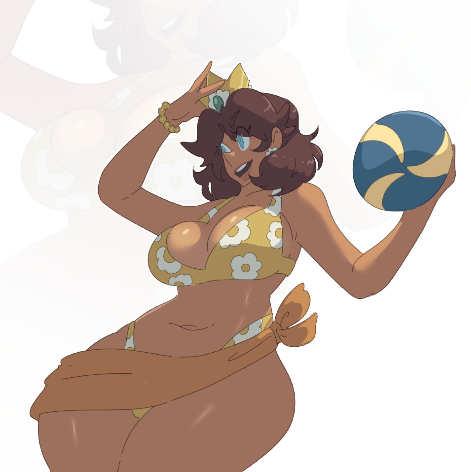 Tags: 1girlsballbare shouldersbeach ballbikiniblue eyesbraceletbrown haircleavagecrownearringsfemaleflower earringsgold crownlarge breastsnavelopen mouthshort hairsolosolo femalesolo focusthick thighsthighs