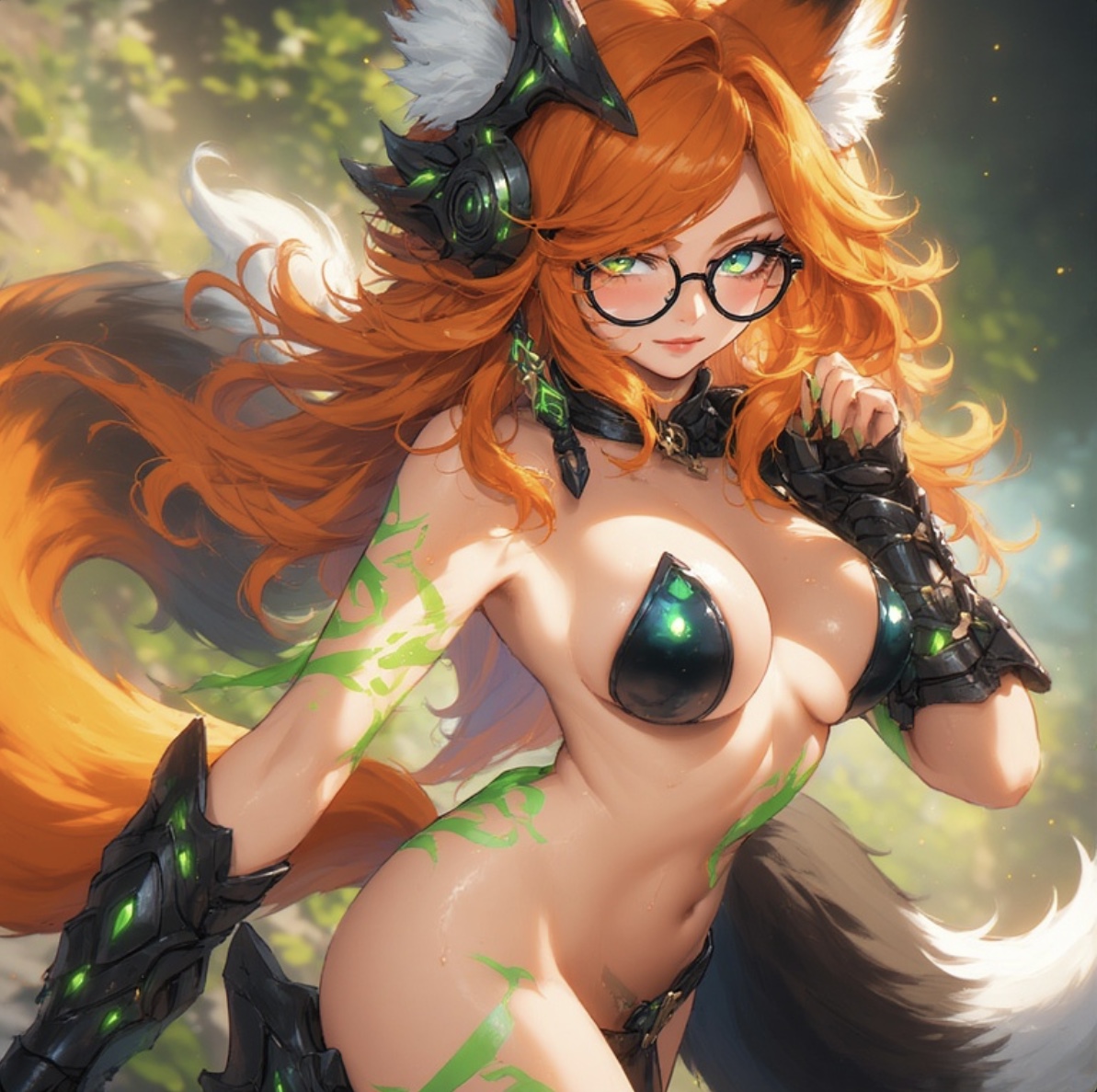 Tags: armored femalebeautifulcovered nipplesfox earsfox girlfox tailglassesglisteningmedium breastsoiledorange hairperfect bodyrevealing clothesshiny skin