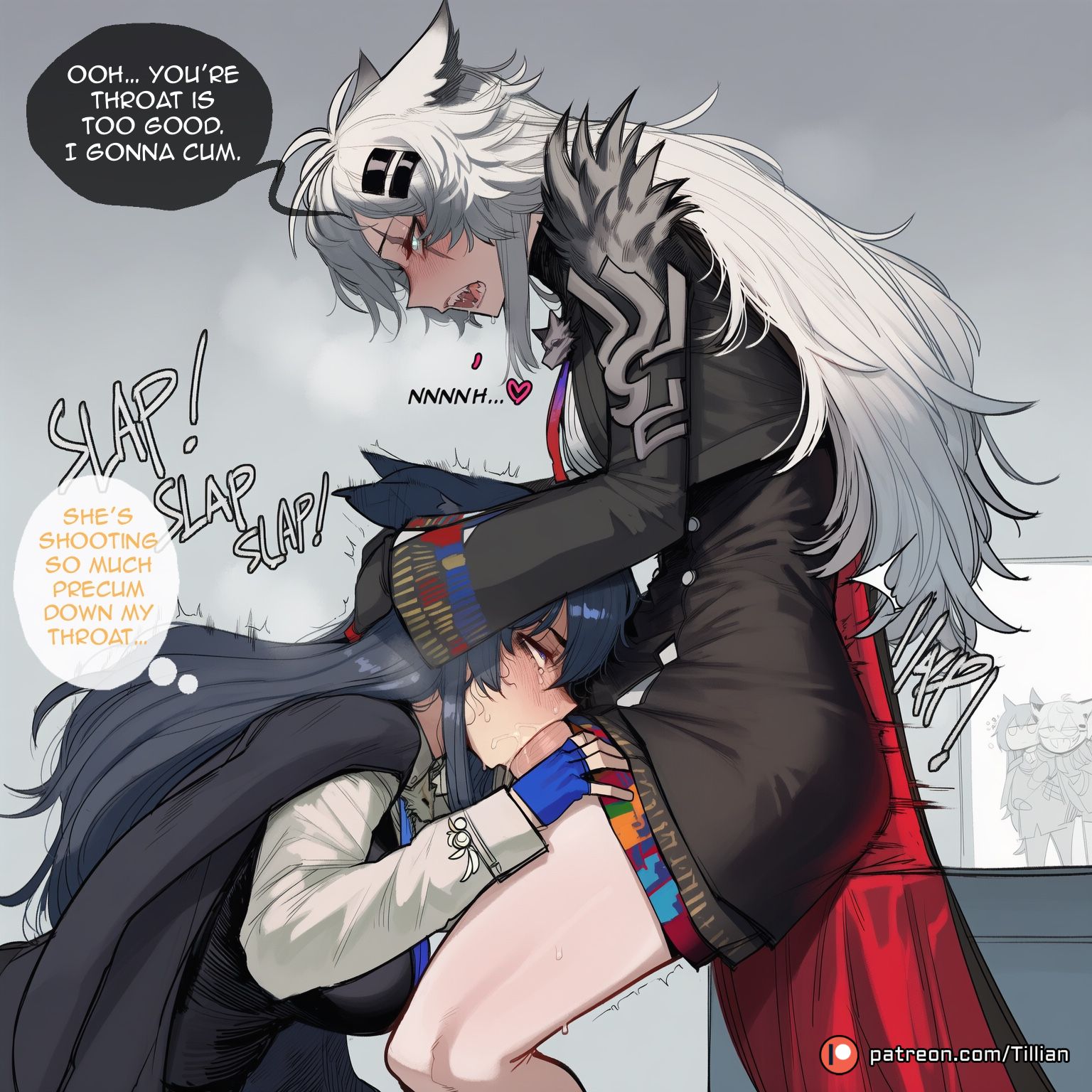 Tags: 2girlsanimal earsblack hairblack vestblue glovesblushbreastscapecum in mouthdeepthroatfellatiofingerless glovesfrom sidefuta with femalefutanariglovesgrey eyesgrey hairhair ornamenthaircliphand on another's headheartirrumatiolong hairlong sleevesmessy hairmultiple girlsnecktieofficial alternate costumeopen mouthoralpenissalivascarscar across eyescar on facesharp teethshirtstealth sexteethtremblingvestwhite hairwhite shirtwolf earswolf girl