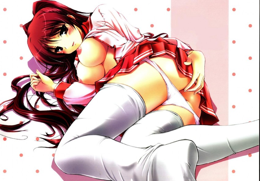 Tags: blushbreastsbrown eyesclothingfemalelarge breastslong hairnipplesopen clothesopen shirtpantiespanty pullred hairschool uniformserafukushirtskirtstockingsthighhighsunderwearundressing