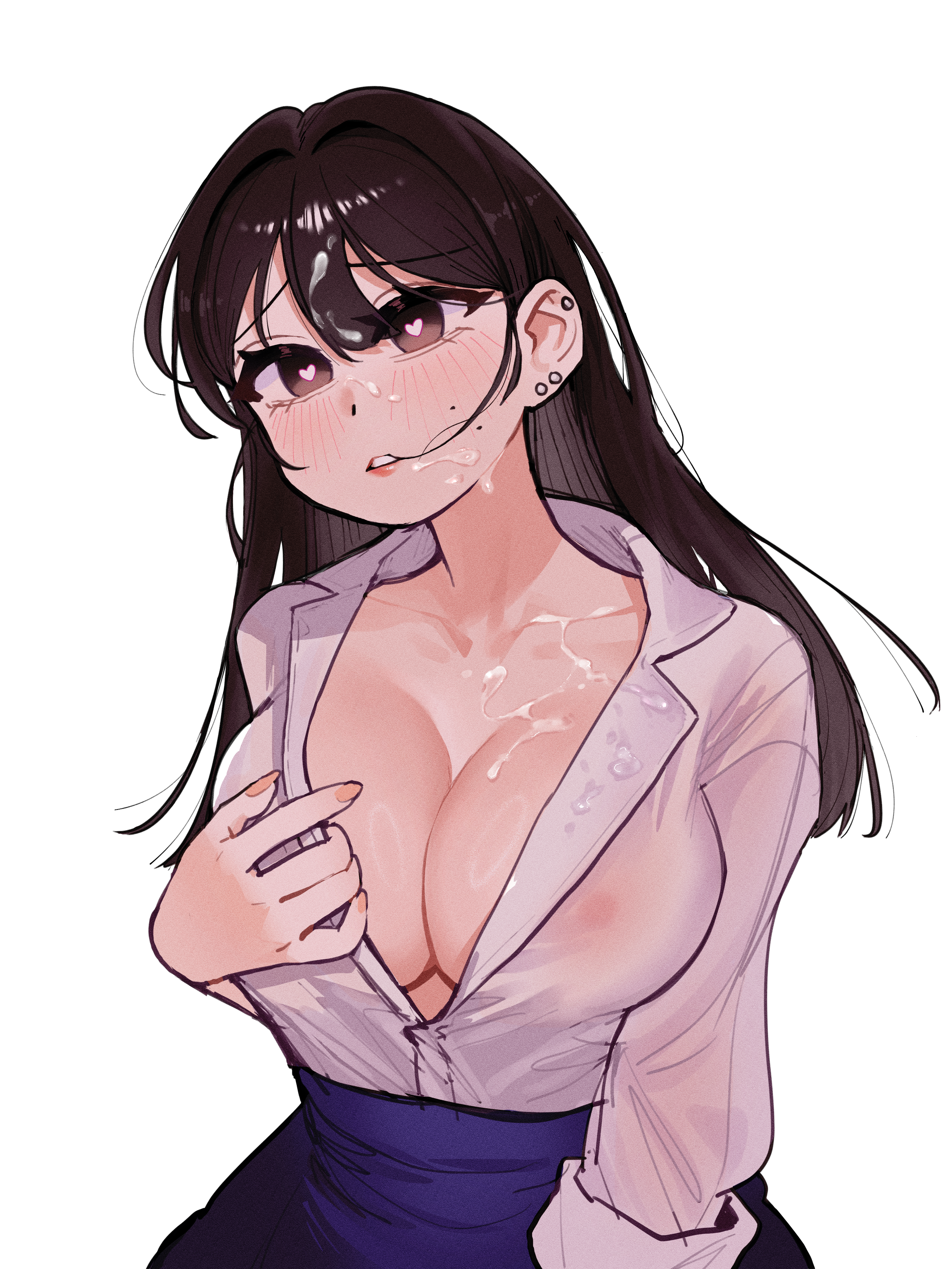 Tags: blushbreastsbrown eyesbrown haircleavageclothes pullcollarbonecovered nipplescumcum on bodycum on breastsearringsfacialfemalehair between eyeshair intakeshair tie in mouthheartheart-shaped pupilsjewelrylarge breastslong hairmolemole on cheekmouth holdmultiple earringsopen clothesopen shirtopened by selfparted lipspartially unbuttonedquatersee-through clothessee-through shirtshirtshirt pullsolosymbol-shaped pupilswhite background