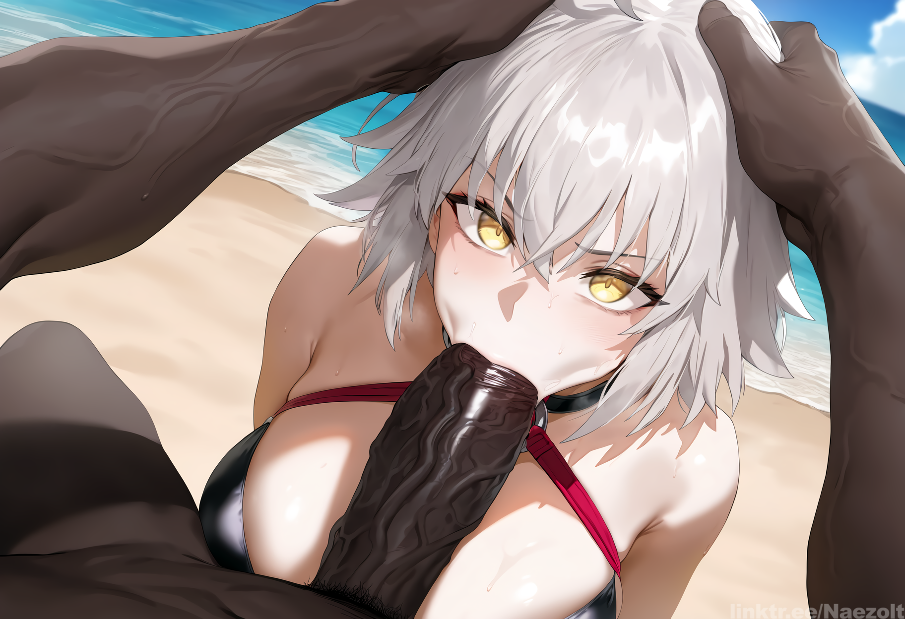 Tags: 1boyahogebare shouldersbeachblack bikiniblack chokerblue skyblushcleavagedark-skinned maleerectioneyebrows visible through hairfellatiofemalegrey hairhair between eyeshand on another's headhands on another's headhead grabhuge cockinterracialirrumatiolarge breastslooking at viewermale pubic hairnudeo-ring bikinioceanoutdoorspovRule34short hairsolo focusstraightsweatveiny penisvery dark skinwhite hairyellow eyes