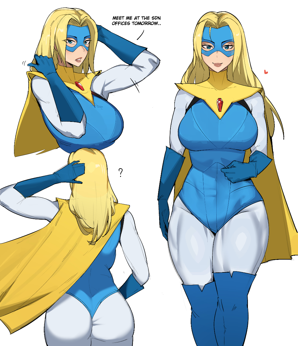 Tags: 1girlsblonde hairdomino masklong hairmulticolored bodysuitmulticolored clothingskin tightslarge bellysuperherosuperheroinetonedtoned female