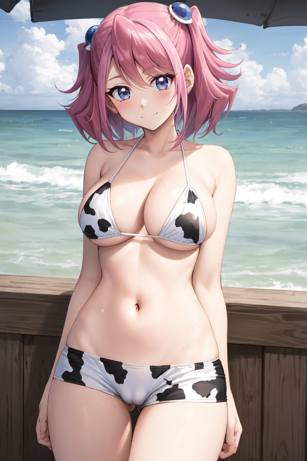 Rule 34 – 1girls black hair breasts cow print cow print bikini female huge breasts large breasts light-skinned female light skin long hair neneneji nipples original original character | 8975599