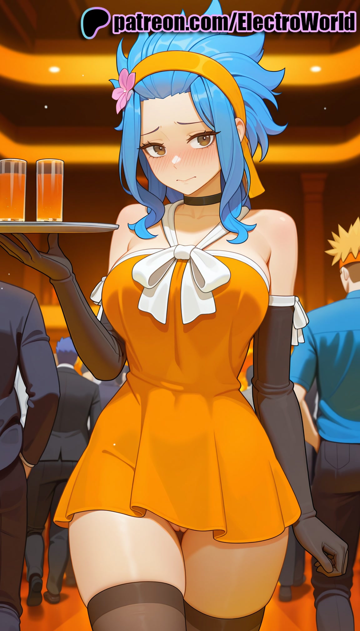 Tags: 1girlsalcoholbare shouldersbeer mugblack glovesblack legwearblue hairblushbreastsbustchampagne flutechestcupdressdrinking glassdrinking strawelbow glovesfemaleglovesholding cupmultiple boysorange dressthighhighstray