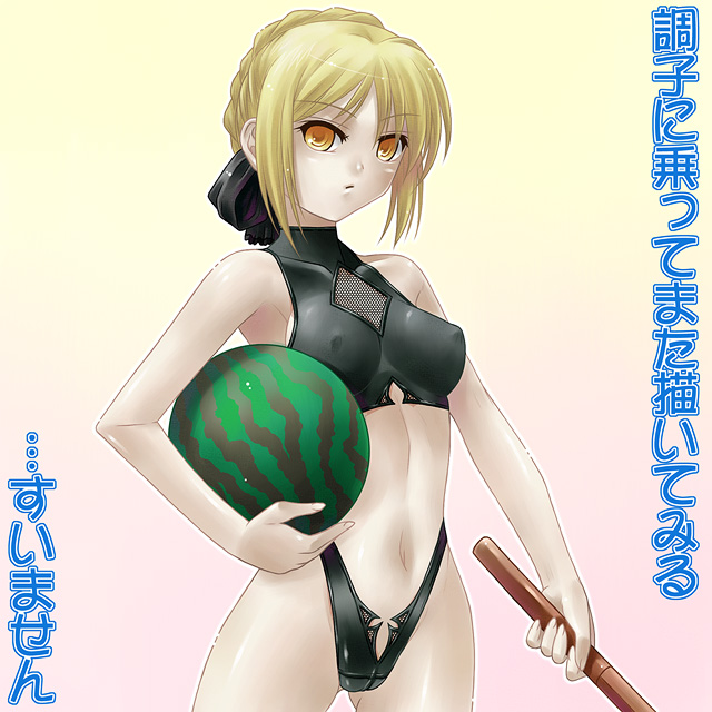 Tags: bikinibokkenerect nipplesfemalefoodfruitholdingholding fruitnipplessolosuikawariswimsuitswordwatermelonweaponwooden sword
