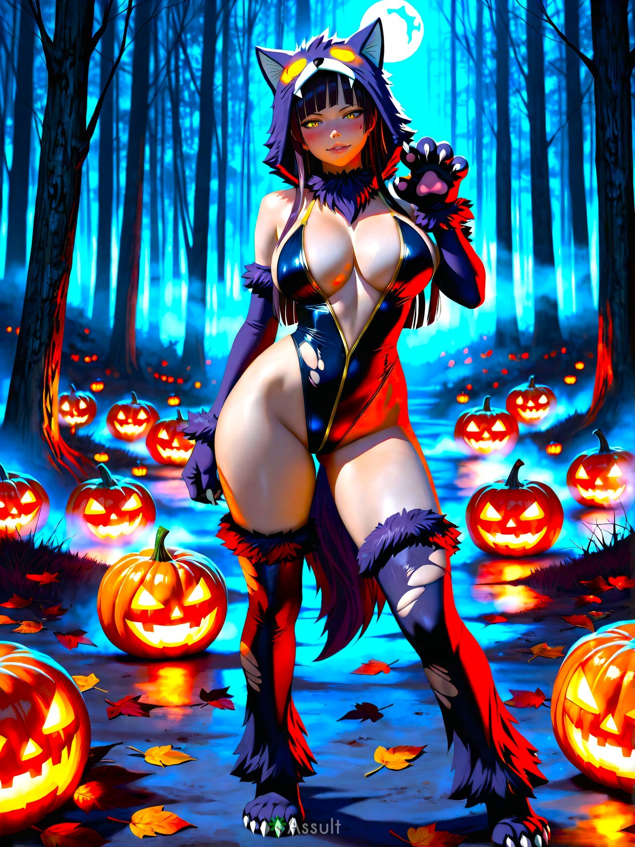 Tags: 1girlsanime girlbare thighsbeautifulbeautiful girlbustycat costumecat legscat pawscurvydark hairdead treesfemale onlyforesthalloween themehigh leg leotardhotkawaiilarge breastslightsmaple leavesmistmoonlightnaturepumpkinseductiveseductive posesemi realisticsexy posesmiling at viewersoloswordswomanthick thighstorn clothingunzippedvoluptuous femalewitchzipper