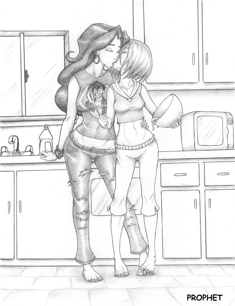 Tags: 2girlsclothingcookingdaughterfemalefemale onlyhand on another's waistholding objecthumanincestindoorskissingmothermother and daughtertorn clothesyuri