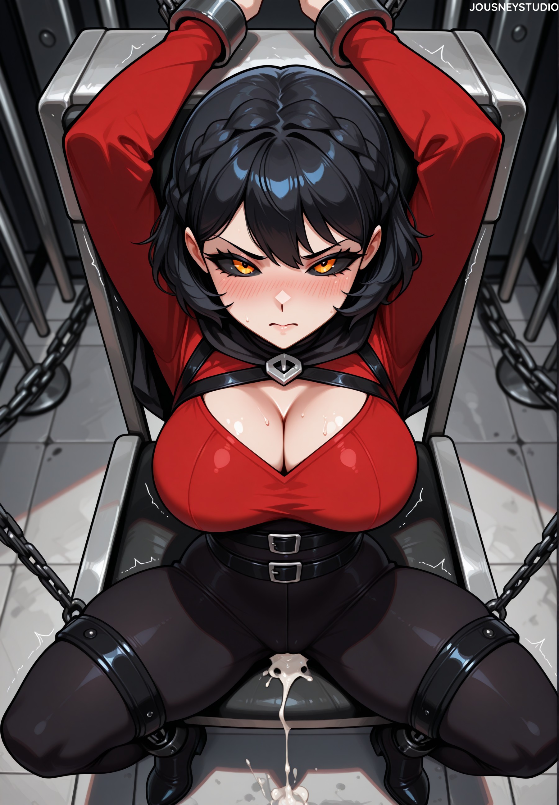 Tags: after sexafter vaginalarms upbeltblack footwearblack hairblack pantsblack sclerablushbondageboundbound wristsbraidbreastschainscleavagecleavage cutoutclosed mouthclothingclothing cutoutcolored scleracrown braidcumcum in pussycumdripfemalefrom abovelarge breastslong sleeveslooking at viewerpantsred shirtrestrainedrestraintsshacklesshort hairsittingsolospread legssweattight clothestight pantstremblingv-shaped eyebrowsyellow eyes