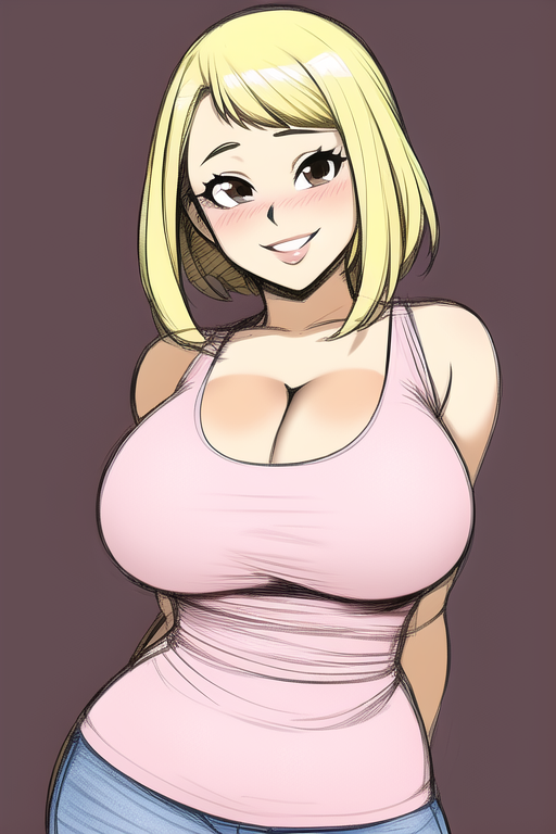 Tags: ai generatedalternate hair colorbig breastsbimbobimboficationblonde hairbrown eyescollege studentcurvaceouscurvygyaruhypnosisimageboardmy hero academianai diffusionochako urarakapink shirtRule34school uniformsketchsmilesmilingsmiling at viewersolosolo femalesolo focusstable diffusiontank toptight clothingtransformation