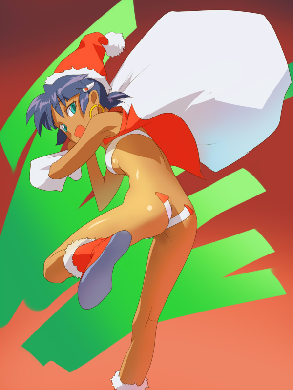 Tags: 1girlsassass cleavageass crackbandeaubandeau bikinibootsbottomlessbreastsbutt crackc-stringcurvaceousdark skindark-skinned femalefemalehumanlarge breastsprincesspurple hairsanta costumesanta hatshort hairsolotubetopunderboobvest