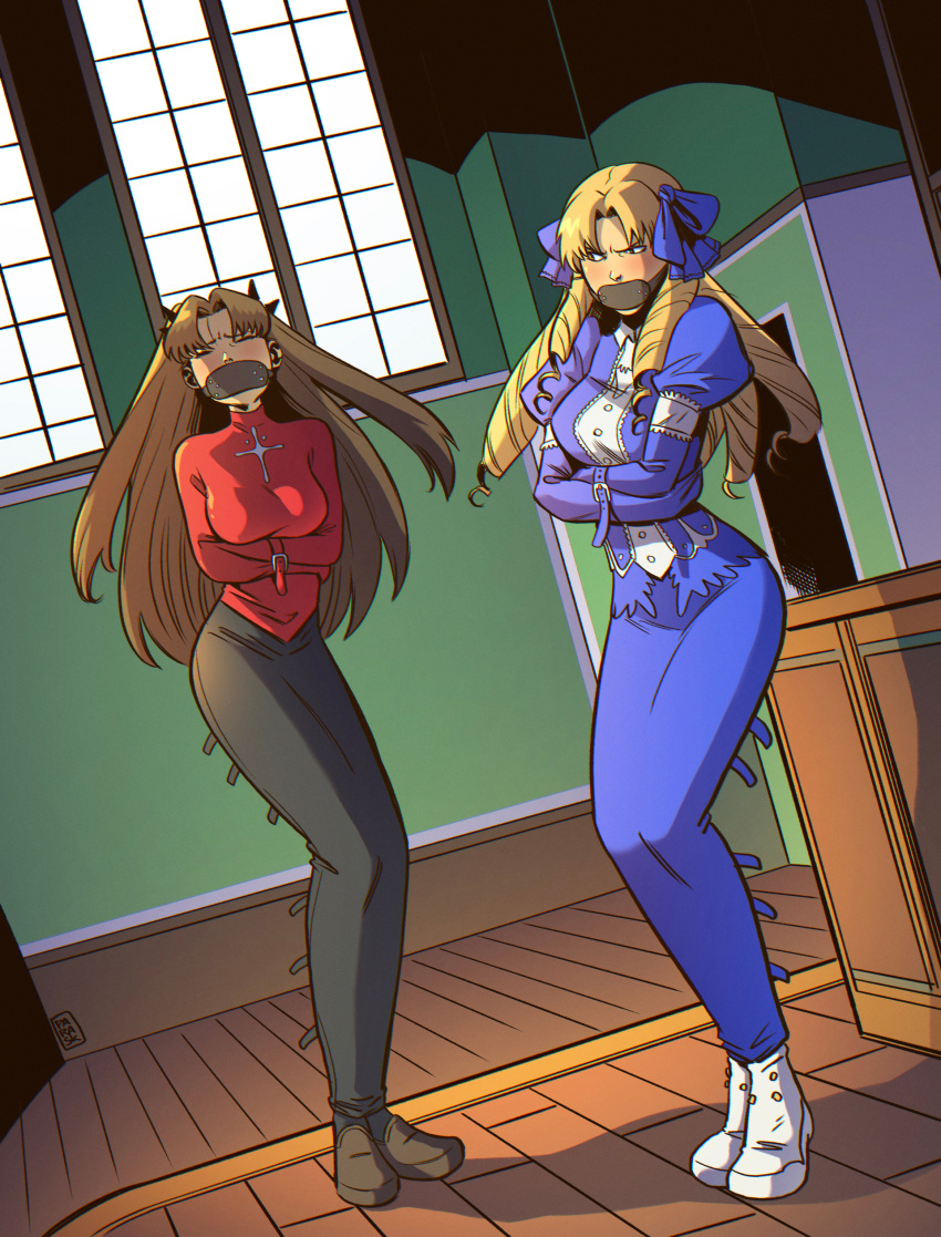Tags: 2girlsabsurdresadapted costumeblonde hairbondageboundbound armsbowbreastsbrown eyesclosed eyesdrill hairfate (series)fate/stay nightgaggedhair intakeshair ornamenthair ribbonhairbowhighresimageboardlegbinderlong hairlordtabaquiluviagelita edelfeltmedium breastsmultiple girlsquad drillsrestrainedribbonringletsRule34shoesstandingstraitjackettohsaka rinvery long hair