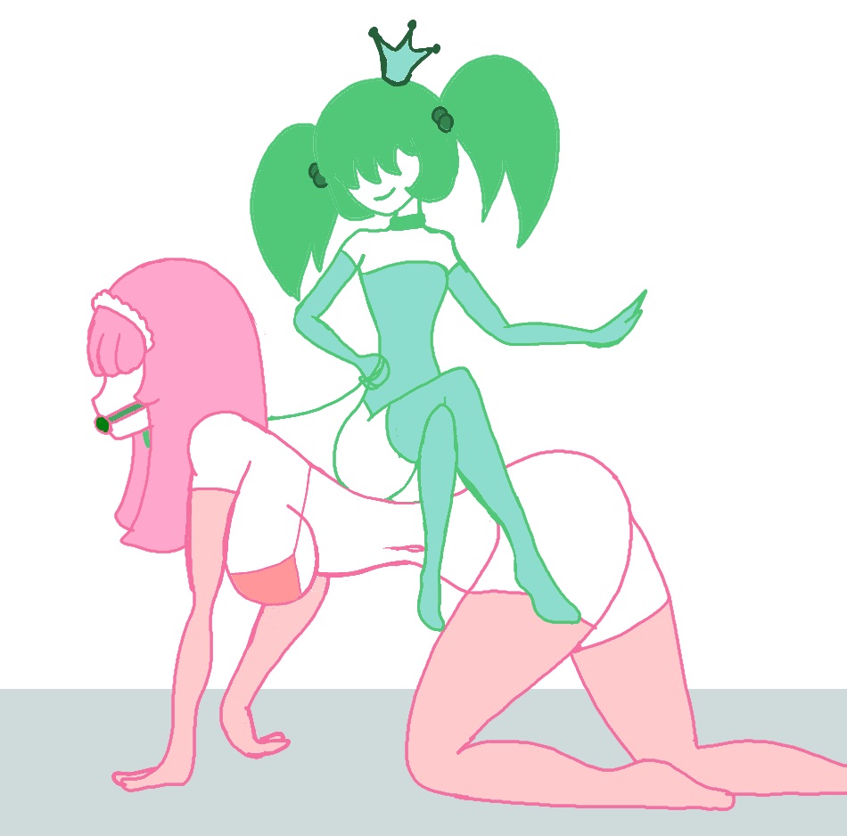 Tags: 2girlsassbikiniblank backgroundbracrownfemalefemale onlygaggreen clothinggreen gloveshair beadshair covering eyeshair ornamenthair over eyeslong gloveslong hairmouth gagon toppink brapink glovespink hairsmall dom big subsmilestraight hairtwintailswhite backgroundwhite bodywhite skin