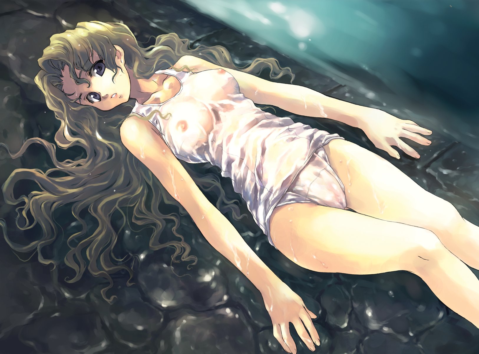 Tags: 1girlsblonde hairbreastsfemalelegslong hairmedium breastsnippleson backone-piece swimsuitschool swimsuitsee-throughsoloswimsuitwaterwetwhite school swimsuit