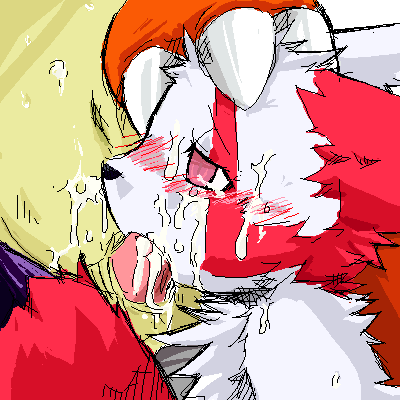 Tags: 1boy1otherambiguous genderanimal genitaliaanimal penisblowjobblushblush linesblushingclawed fingersclawsclose-upcumcum in mouthcum on facecum on torsofurfurryhalf-closed eyesmaleorange skinpenispink eyesred and white furred fursucking offsweatwhite furyellow skin