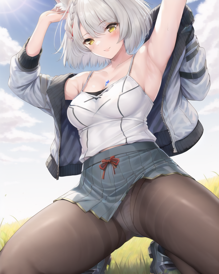 Tags: ai generatedarmpitsarms upblack brablack legwearblue skyblushbootsbraidbreastscat earscatgirlcloudscore crystalemkgrassimageboardjacketlegwearmedium breastsmedium hairmio (xenoblade)nai diffusionpantiesRule34silver hairskysleevelesssmilestable diffusionsuntank topthick thighsthighsvoluptuouswhite jacketwhite pantieswhite shirtwhite skirtxenoblade (series)xenoblade chronicles 3