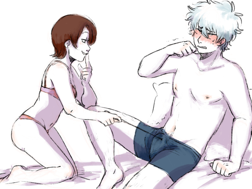 Tags: 1boy1girlsblushbrabrown hairbulgeclosed eyesembarrassederection under clothesfemalefemdomfinger to mouthgintamagintoki sakataimageboardketsuno anakneelingmalemalesubniichanon bedpantiespartially coloredpink brapink pantiespokingpoking penisRule34short hairsilver hairsittingsmiletopless maleunderwearvery short hairwhite hair
