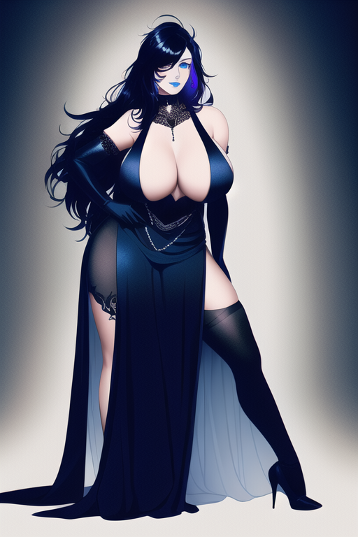 Tags: 1girlsai generatedbig breastsblack hairblue eyesbreastscleavagedresselbow glovesfemaleimageboardlong hairraindle ocRule34solosolo femalesolo focusyvaine (raindle)