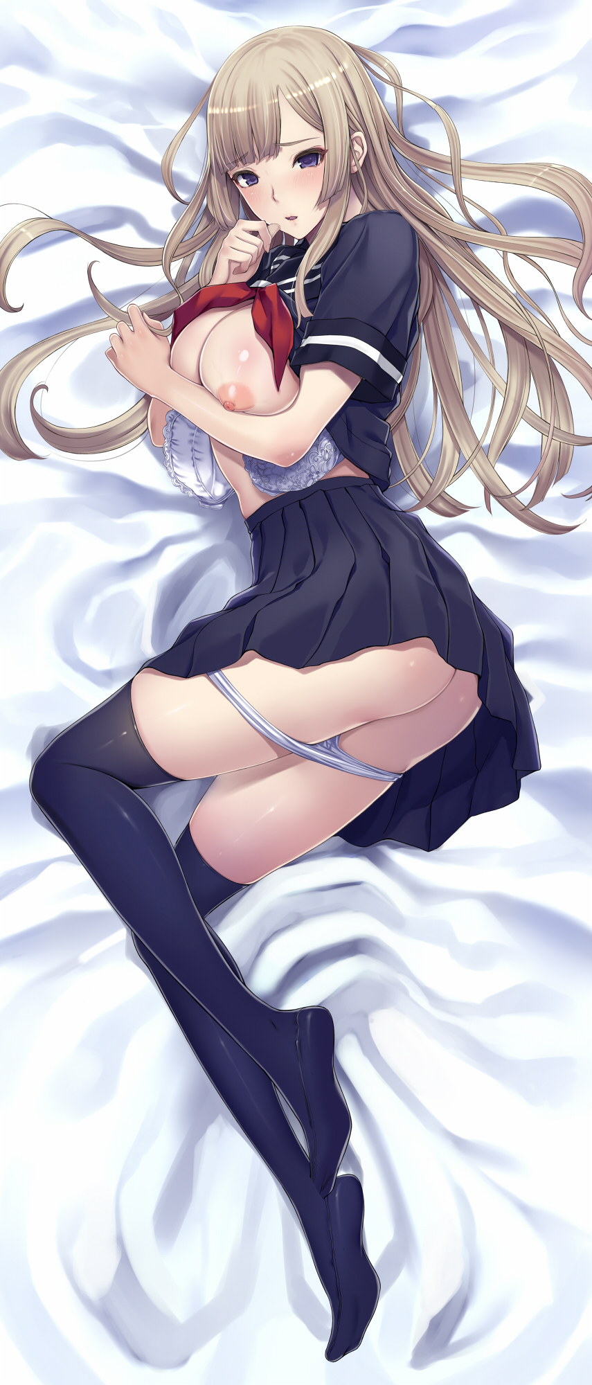 Tags: blonde hairblushbra removedbreastsbreasts outcircle hitorifemaleimageboardlegslondon inulong hairlooking at viewerlying on sideoriginalpurple legwearRule34school uniformsolothighhighswhite bra