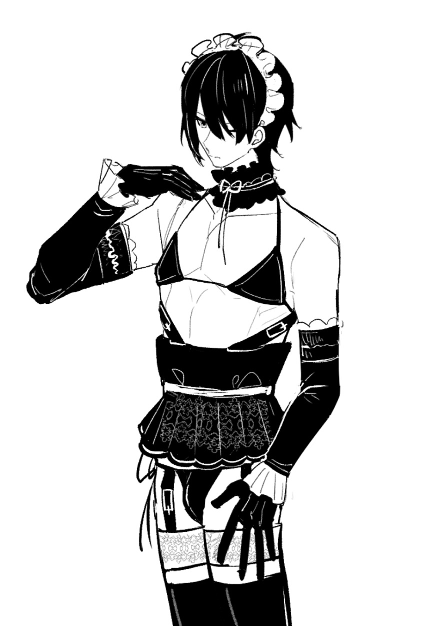 Tags: ambush (trap)bare shouldersbikinibikini topcrossdressingdetached collardetached sleevesfeminine malefrillsgarter strapsgintamagirlygloveshair over one eyehisagi (hria h)imageboardlace-trimmed thighhighsmaidmaid headdressmaid uniformmalemale onlymonochromeRule34solostockingstakasugi shinsukethighhighstonedtoned male